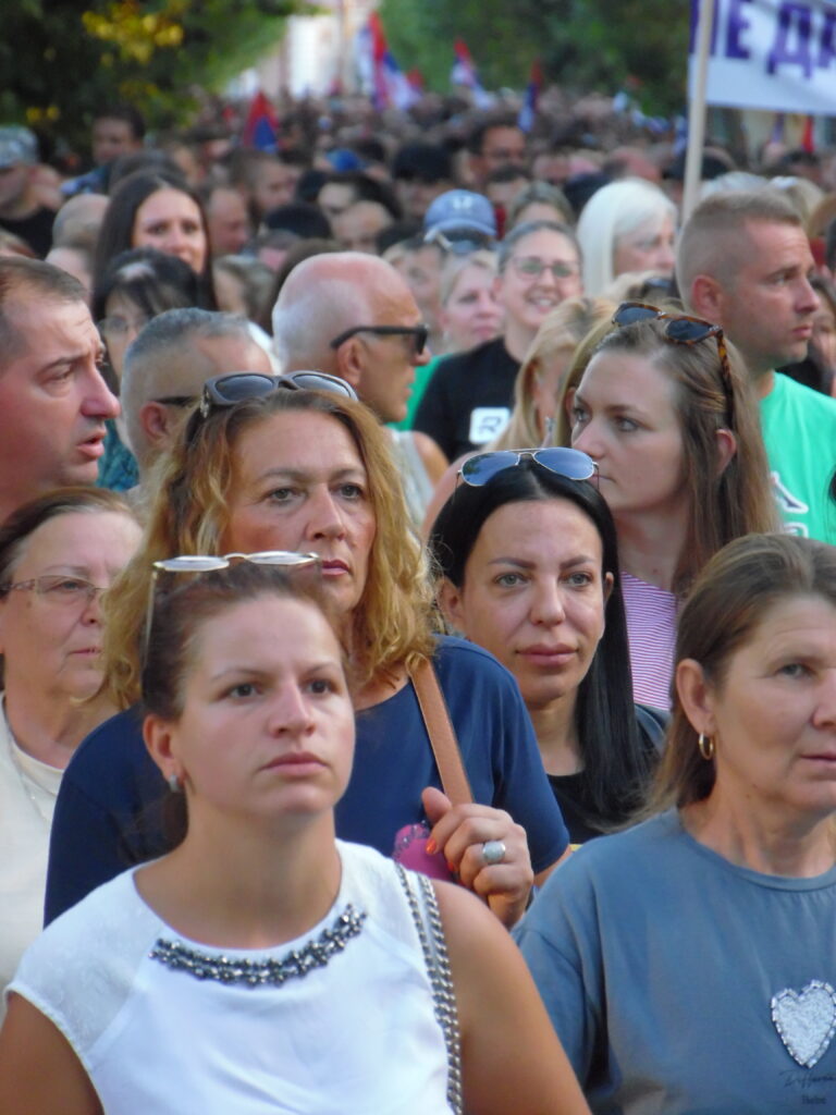 Окупљени грађани, међу којима је био значајан број младих, али и пензионера, носили су транспаренте и узвикивали поруке које су јасно указивале на незадовољство због свакодневних препрека и немира.